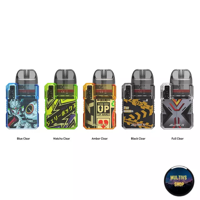 jellybox v2 พอตบุหรี่ไฟฟ้ารุ่นเล็กที่ถูกผลิตขึ้นจากแบรนด์ชั้นดัง Rincoe ที่มีการออกแบบรุ่น serie jellybox ออกมาได้อย่างหลากหลายรูปแบบ จนมาถึงรุ่นนี้ มีการออกแบบให้มีขนาดเล็กกว่าเดิม และ มีน้ำหนักเบากว่าเดิม มีการเปลี่ยนแปลงการทำงานของหัวพอต ให้กลายเป็นแบบ หัวพอตที่มีคอยล์ในตัว ซึ่งมีความแตกต่างจาก jellybox รุ่นอื่นๆ อย่างสิ้นเชิง ตัวเครื่องมีลวดลายการ์ตูน anime สุดน่ารักการจ่ายไฟสูงสุดที่ 16w เหมาะสำหรับการใช้น้ำยาซอลนิค เป็นอย่างยิ่ง แบตเตอรี่ความจุสูงถึง 850 mah โดยราคาที่ถูกมากๆ ในตลาดจึงเป็นตัวเลือกที่น่าสนใจ สำหรับผู้ใช้งบน้อยที่สุด